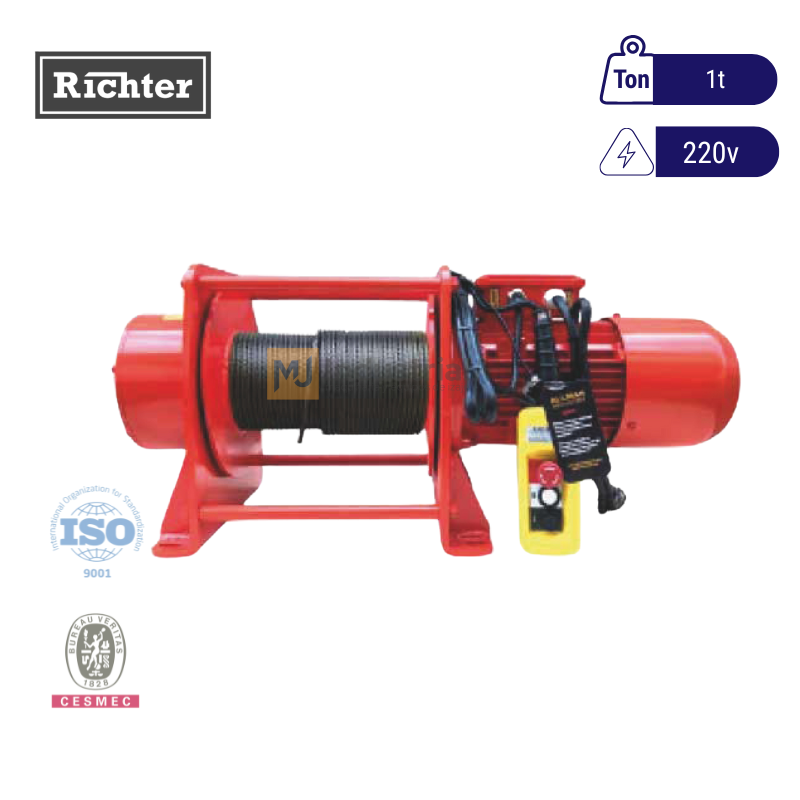 El nuevo modelo de la serie AMW-E de RICHTER, es un winche eléctrico con un diseño que se caracteriza por una carcasa compacta, estructura sólida y un rendimiento de trabajo confiable con capacidad de 1.000Kg. La serie E adopta un nuevo diseño flexible para aplicaciones de trabajo amplias que permiten manejar trabajos de carga media y pesados. Con un rendimiento y clase de trabajo M4.